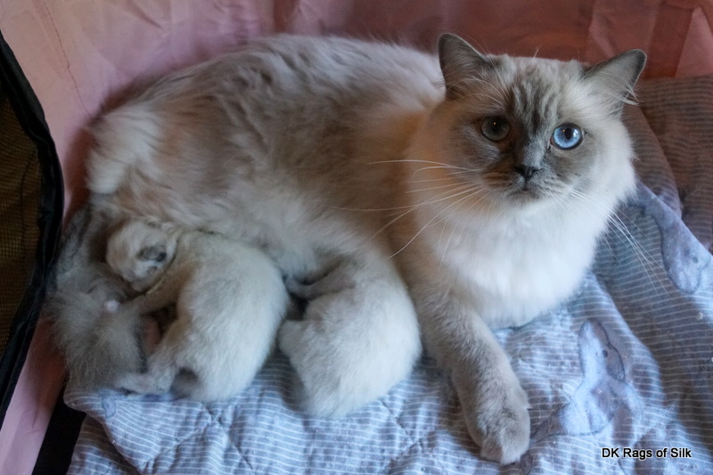 Vores Pongee-kuld blev født den 8. september 2025 . Der er to dejligt, store killinger i kuldet - 2 små drenge, som vejede henholdsvis 105 og 108 g ved fødslen. Mor til kuldet er vores hunkat IC Vicentka FelinoTherapy*CZ aka Tinka og vores hankat DK Rags of Silk Floss Faramir. Det er Tinkas 2. kuld, og hun er en supermor. De to drenge vokser så det knager.