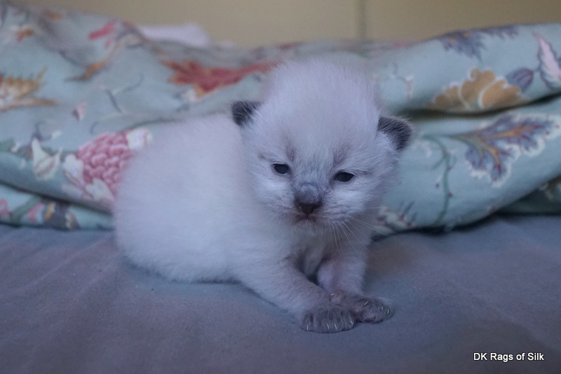 DK Rags of Silk Pongee Pesto | Han | Hvid | Rag n - seal/brun colourpoint | Reserveret |