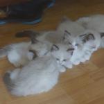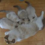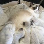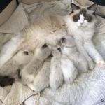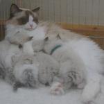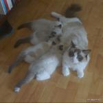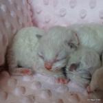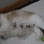 Her kan du følge kuldet udvikling i billeder. På billedet herunder er killingerne kun få timer gamle og mor Hamara passer godt på dem.
