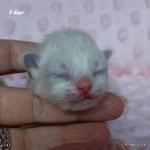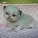 Papaya er den midste af pigerne, men hun var den første, der fik øjne, og hun er en meget livlig pige, der helt fra hun kunne høre, er kommet os i møde. Hun elsker at blive nusset på maven og kan næsten ikke være i sig selv, når vi stryger hende over den lille lyserøde mave. Papaya var en af de første til at begynde at lege. Hun elsker at småslås med Pepperoni og Pastrami. Hun ser utroligt fræk og charmerende ud med sit lidt smalle forskudte omvendte V i ansigtet.