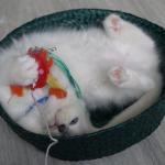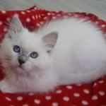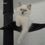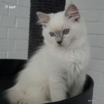 Qaia er vores lilla mittede ragdoll killing fra Qubilai kuldet. Hun bliver i katteriet som avlshun, når hun er gammel nok. Hun bor hos vores fodervært Jette, som også kommer til at udstille hende. Hun er en stor, robust pige med god længde og meget feminint look.