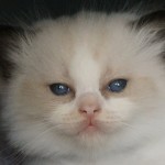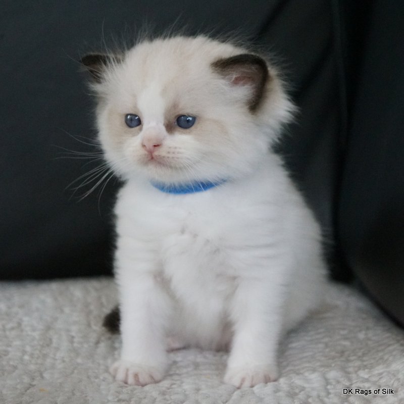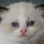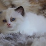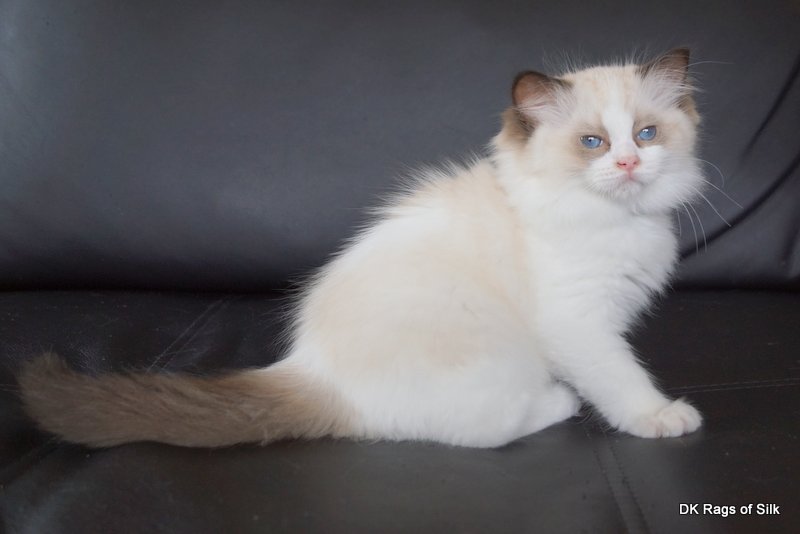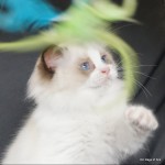 Swirl 12 uger gammel. Han er den skønneste godmodige og dovne bamse af en ragdoll killing. Han gider godt lege, men derefter tager han sig en lang lur gerne gemt lidt af vejen. Vi har ikke tal på de gange, hvor vi har fundet ham godt gemt i bogreolen, hvor han kunne sove i fred.