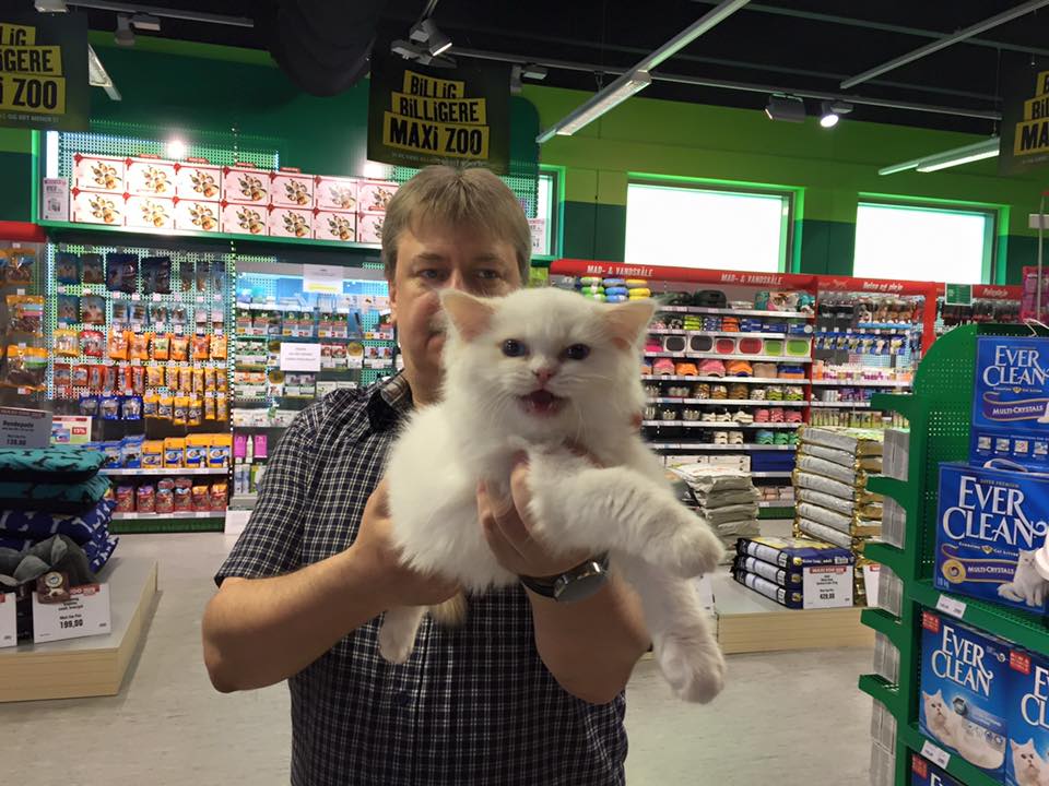 I gå r var Heartbreaker på besøg i vores lokale Maxizoo for at hente sin præmie. Han har nemlig vundet butikkens fotokonkurrence som sødeste killing og fik som præmie vå dfoder og et gavekort på 200 kr. til butikken. Heartbreaker nød opmærksomheden og var meget begejstret for at få tørret andekød som godbidder af de søde piger i butikken.