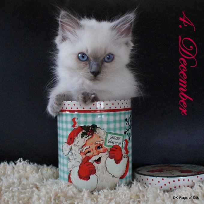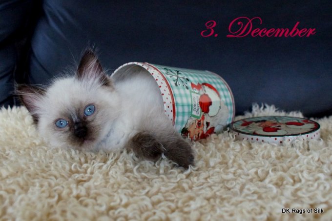 Hos DK Rags of Silk vil vi fejre december måned med en hyggelig juletradition, så hver dag vil vi åbne en låge i kalenderen med et ragdolljulebillede. Vi håber, at I vil nyde det.