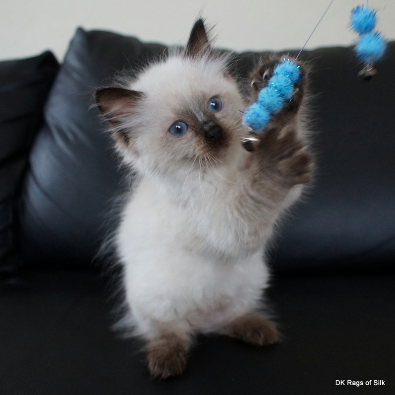 Ragdoll killingerne er nu vokser støt og roligt. I denne uge har de lært at bestige klatretønden og er vilde med at lege i dens huller og huler. Nå r de er vå gne, gå r den vilde leg i kravlegå rden, hvor vi kan lægge tæpper og legetøj pænt den ene gang efter den anden, hvorefter de spreder det hele igen og igen godt hjulpet af Louane, som bare elsker at være sammen med dem i kravlegå rden.