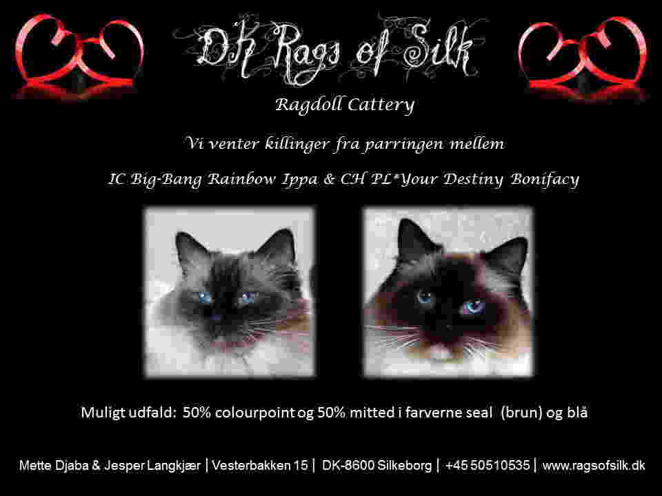 Vi venter ragdollkillinger medio september. Kontakt os, hvis du er interesseret i en killing fra denne parring.