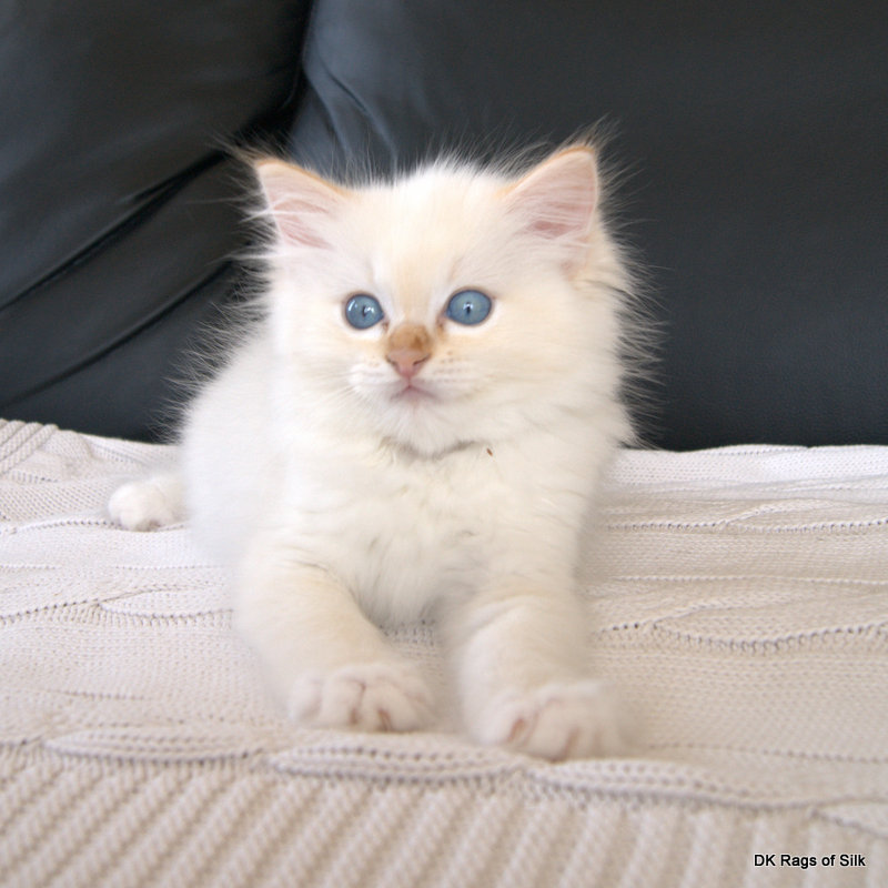 Ragdollkillingen Caspian er blevet 8 uger. Hans farve udvikler sig, så man nu tydeligt kan se hans lille røde næse, og det er nu også tydeligt, at han få r striber (tabby). Han er en virkelig skøn lille dreng med fantastiske blå øjne. Læs mere om Caspian og se flere billeder her.