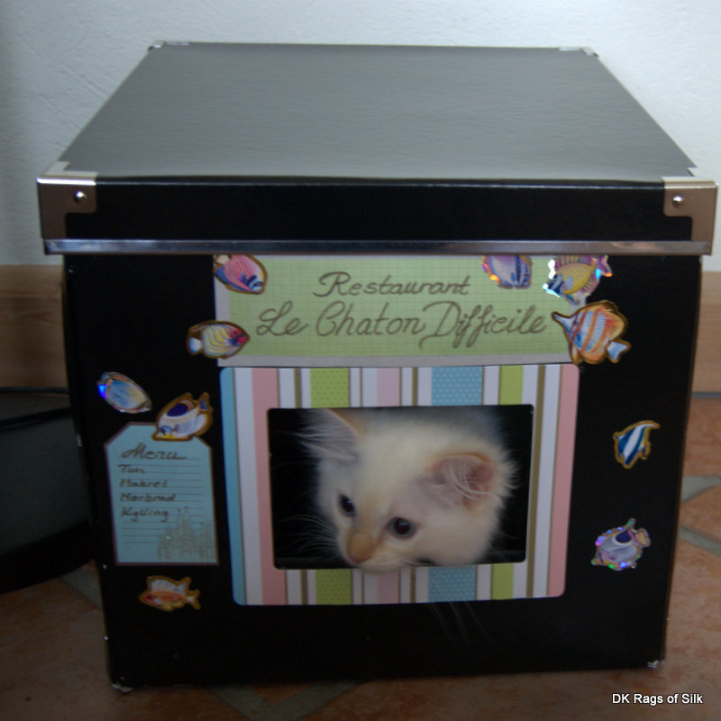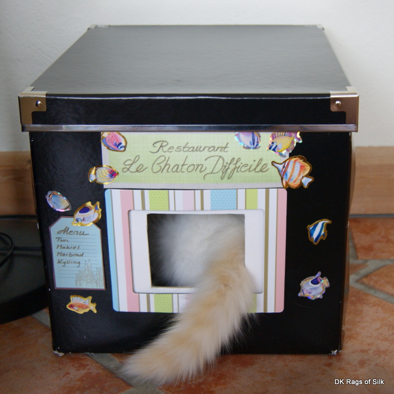 Nu hvor arbejdet kalder igen, må vi finde kreative metoder til at holde de store misser væk fra Caspians vå dmad, så han ikke sulter, nå r vi er væk. Restaurant "Den kræsne killing" erklæres hermed for å ben" :-)