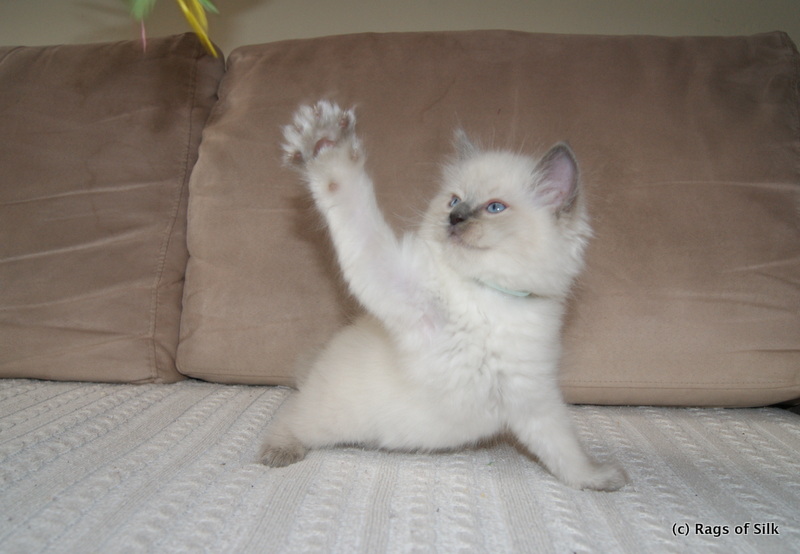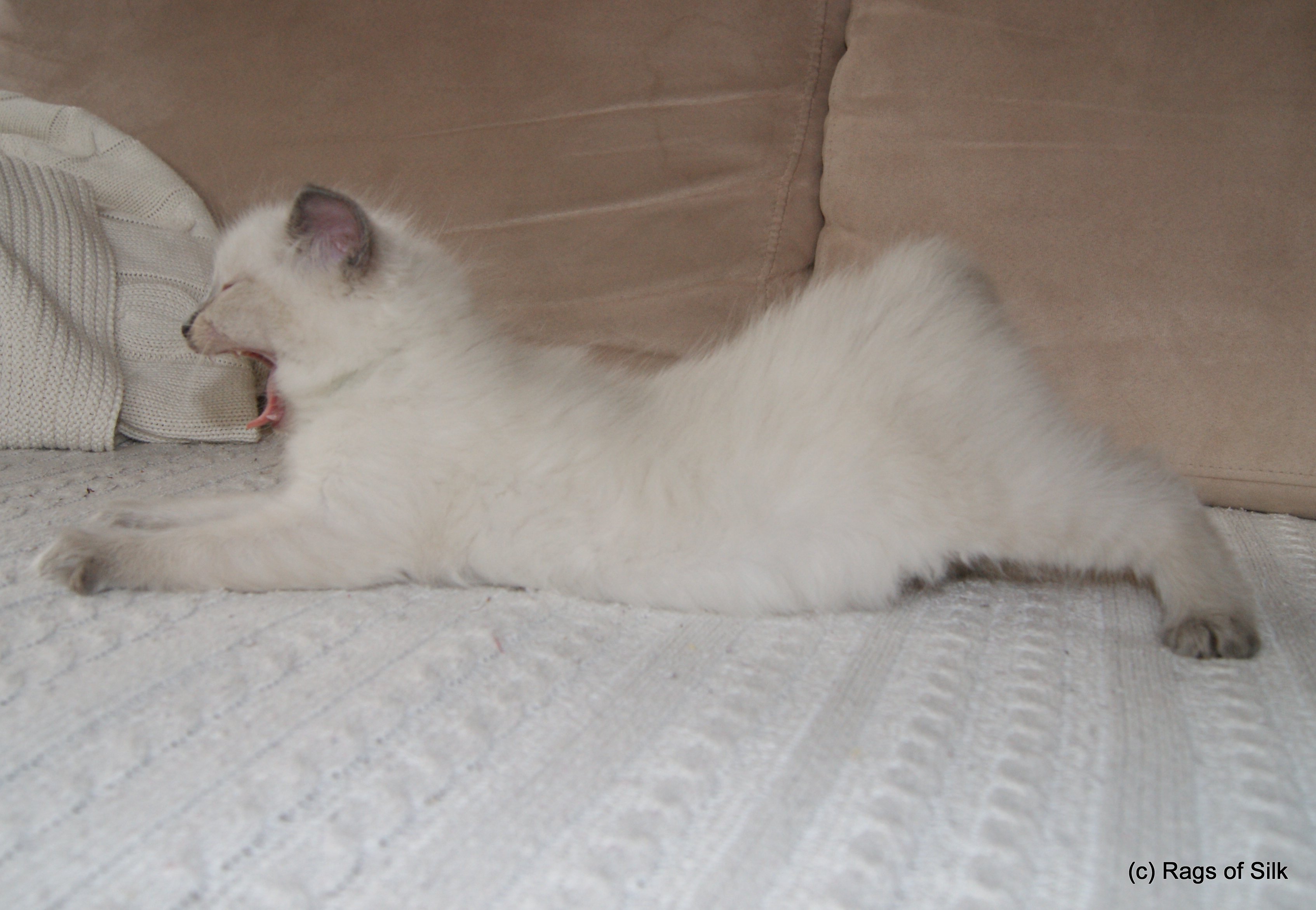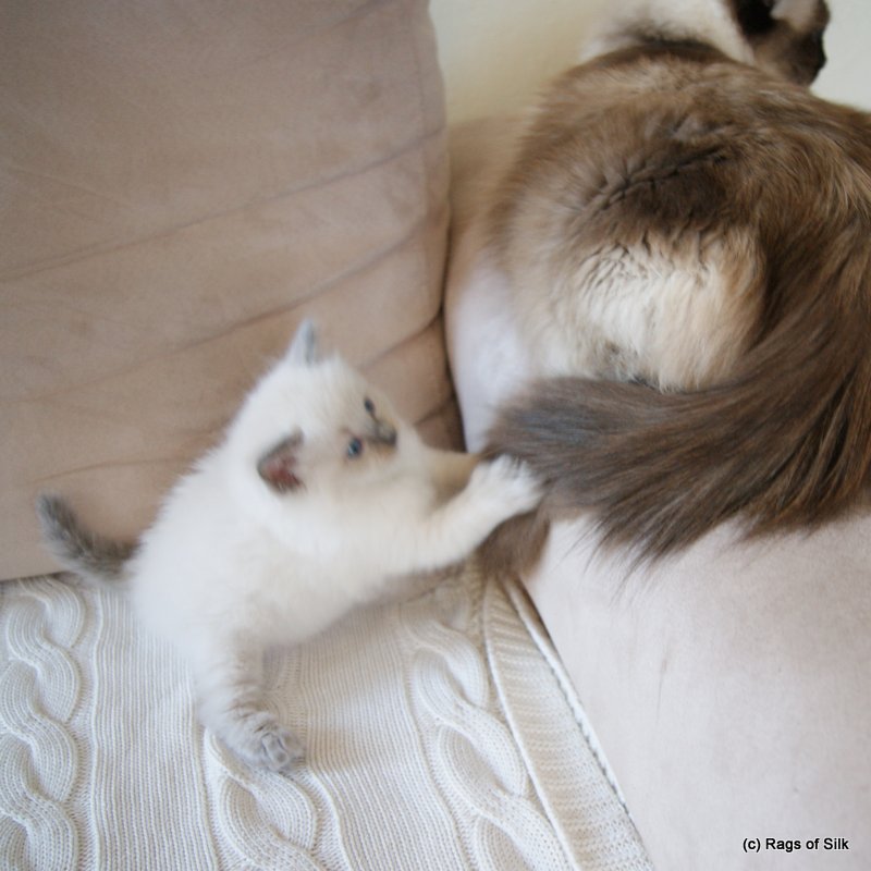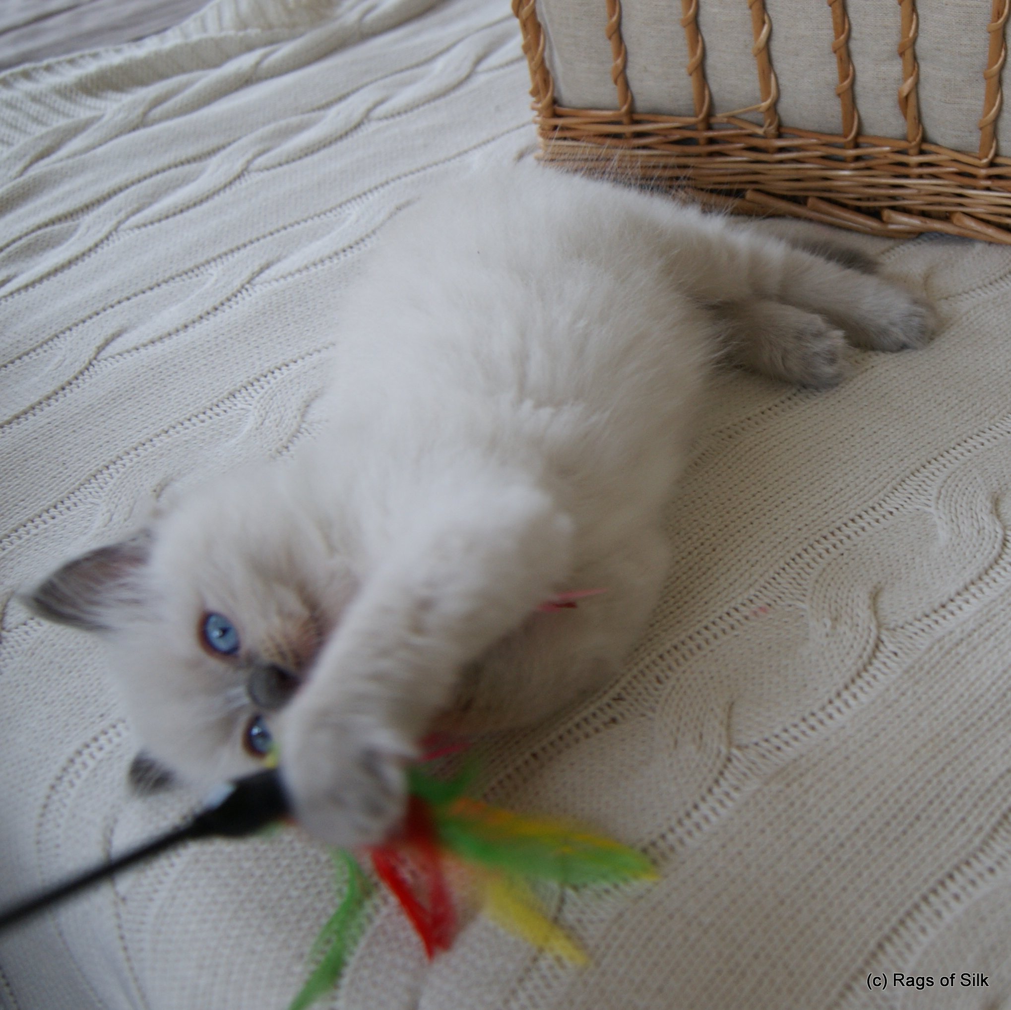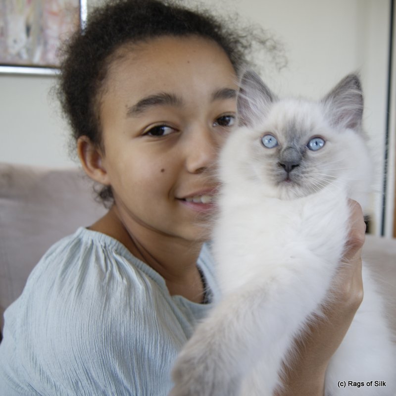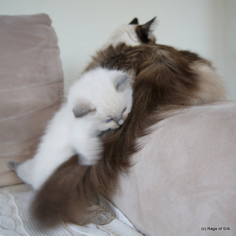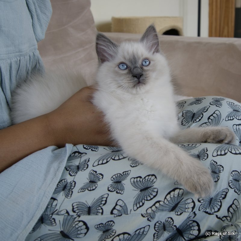 Bastian er med sine 1280 g stadig den største i kuldet. Han har det skønneste ragdoll temperament. Han tog besøg hos dyrlæge og vaccination med ophøjet ro i denne uge.